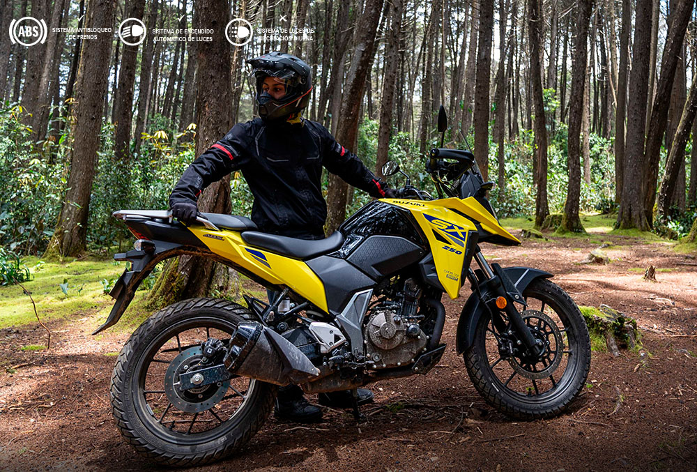 La Suzuki V-Strom 250 SX está equipada con un motor monocilíndrico de 249 cc, refrigerado por aceite mediante el sistema Suzuki Oil Cooling System (SOCS). Entrega una potencia de 26,5 CV a 9.300 rpm y un torque de 22,2 Nm a 7.300 rpm, asociado a una transmisión de 6 velocidades.