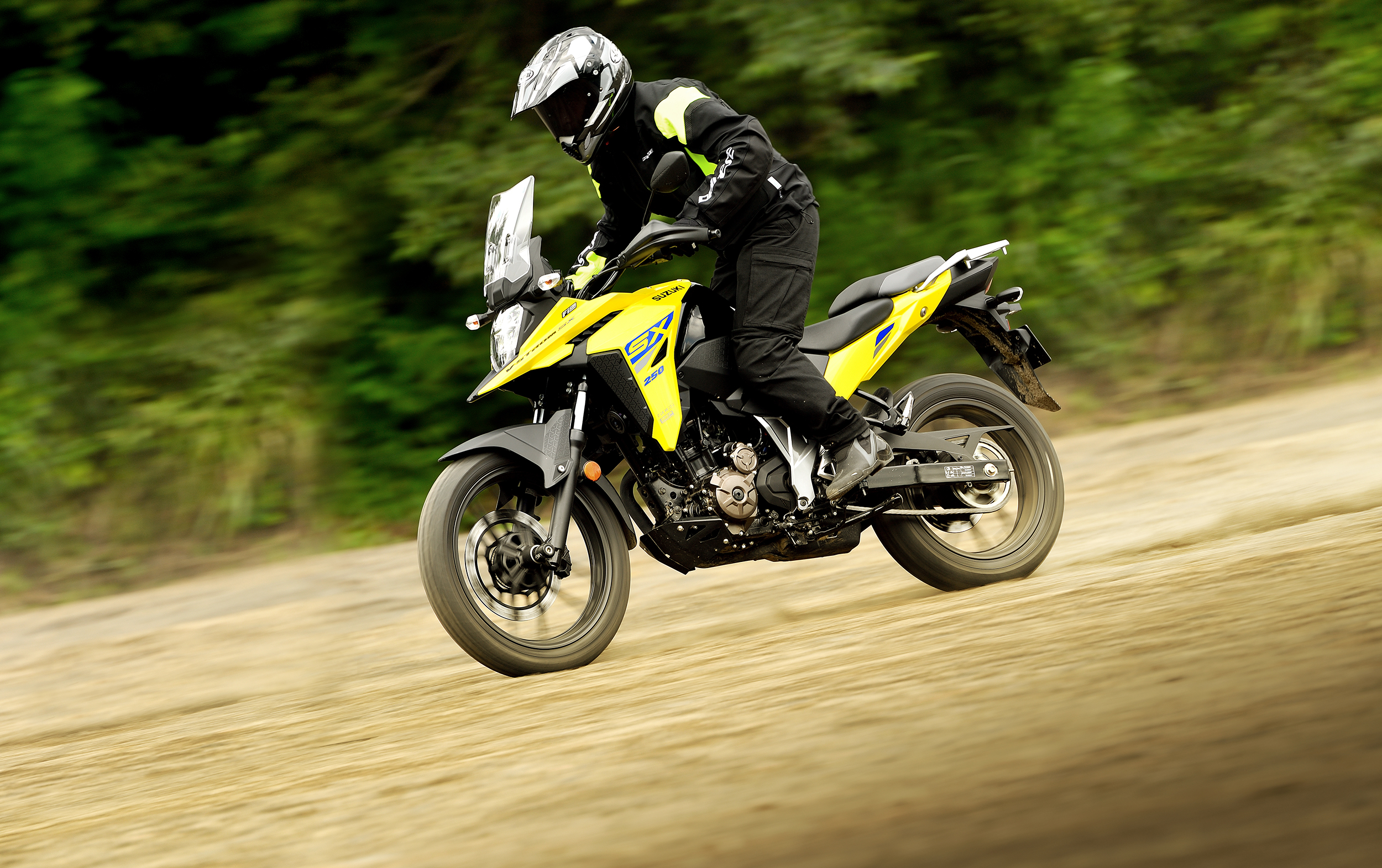 La Suzuki V-Strom 250 SX está equipada con un motor monocilíndrico de 249 cc, refrigerado por aceite mediante el sistema Suzuki Oil Cooling System (SOCS). Entrega una potencia de 26,5 CV a 9.300 rpm y un torque de 22,2 Nm a 7.300 rpm, asociado a una transmisión de 6 velocidades.