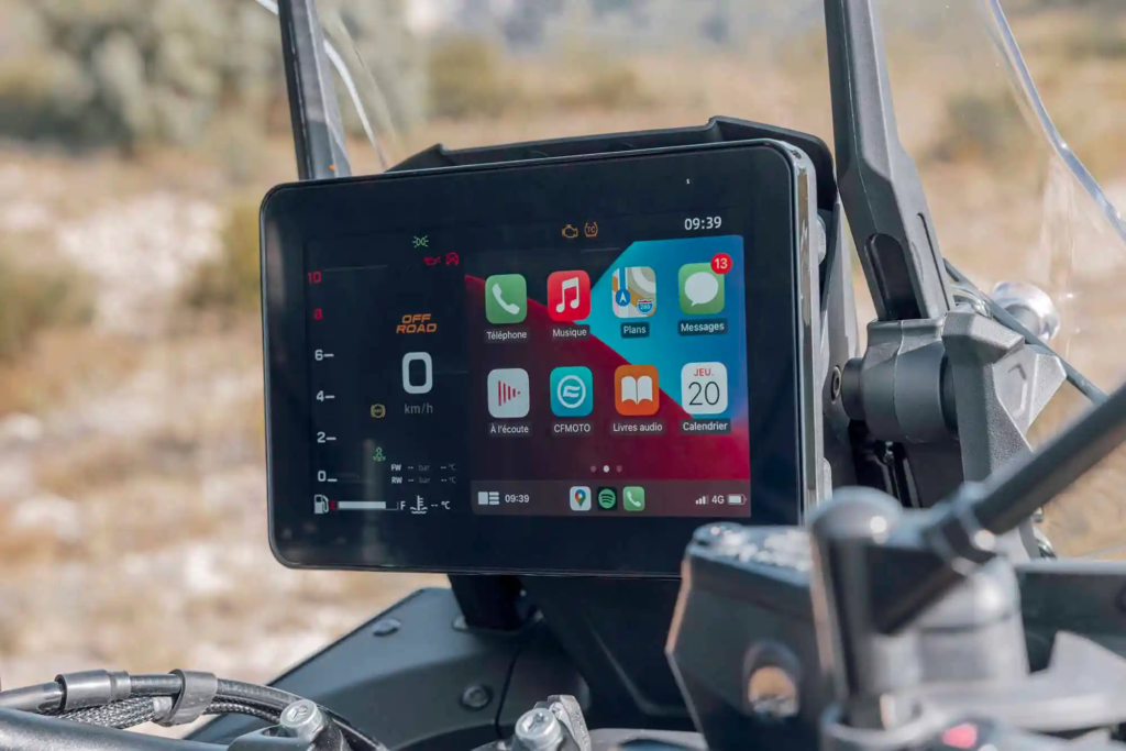 En CFMOTO Argentina, por ejemplo, la marca explica en la 450NK que el T-Box permite una conectividad perfecta entre el vehículo y el teléfono, ofreciendo actualizaciones OTA, MotoPlay, funciones de seguridad y antirrobo, grabación de pistas y visualización en tiempo real de información del vehículo a través de la app CFMOTO RIDE.